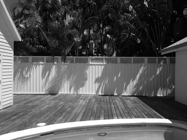 The white 8' tall fences became very dark gray